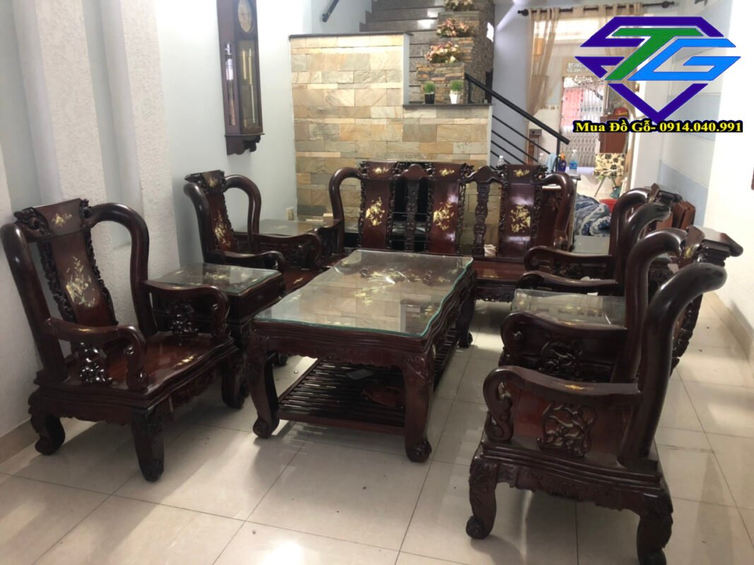 Hình ảnh thu mua bộ bàn ghế gỗ hương mặt nu gõ có khảm ốc
